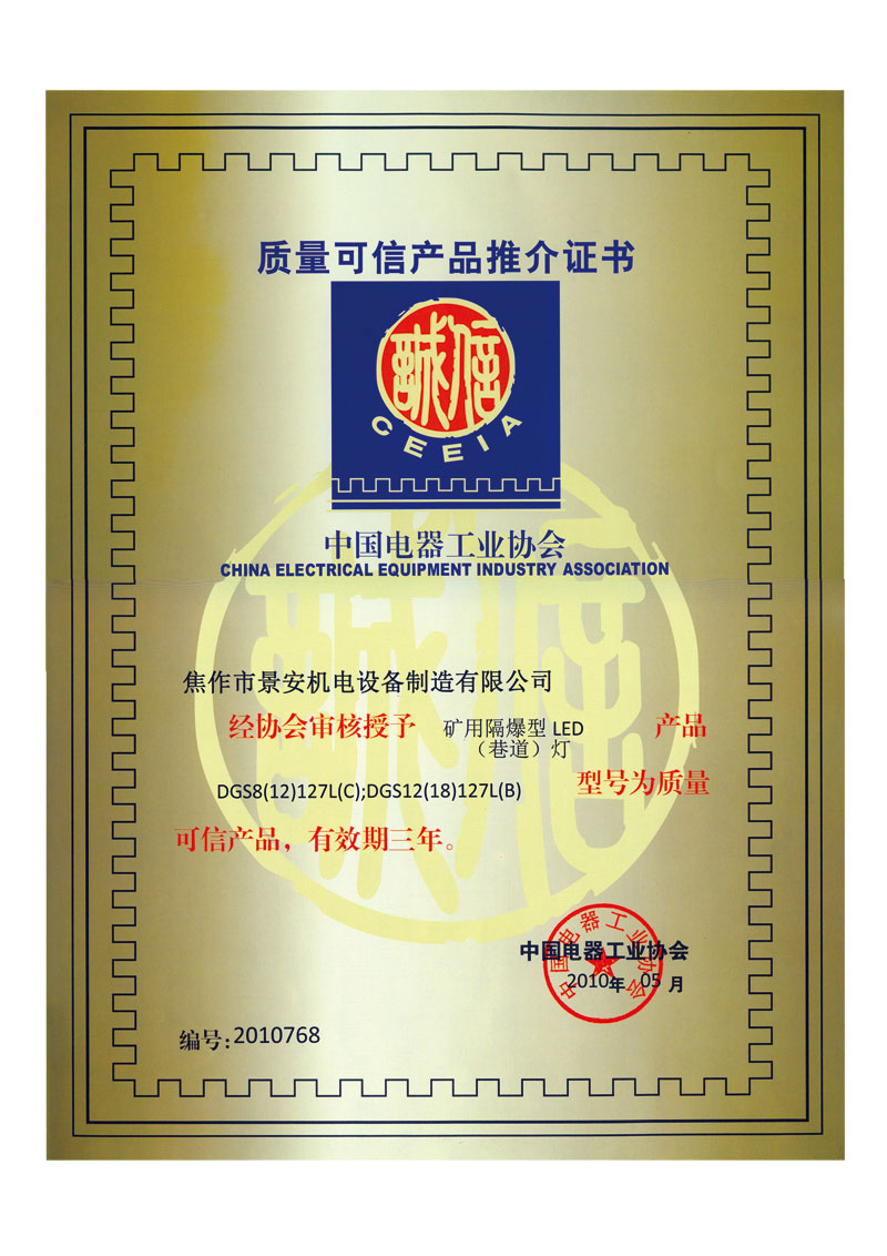 推介证书-LED灯